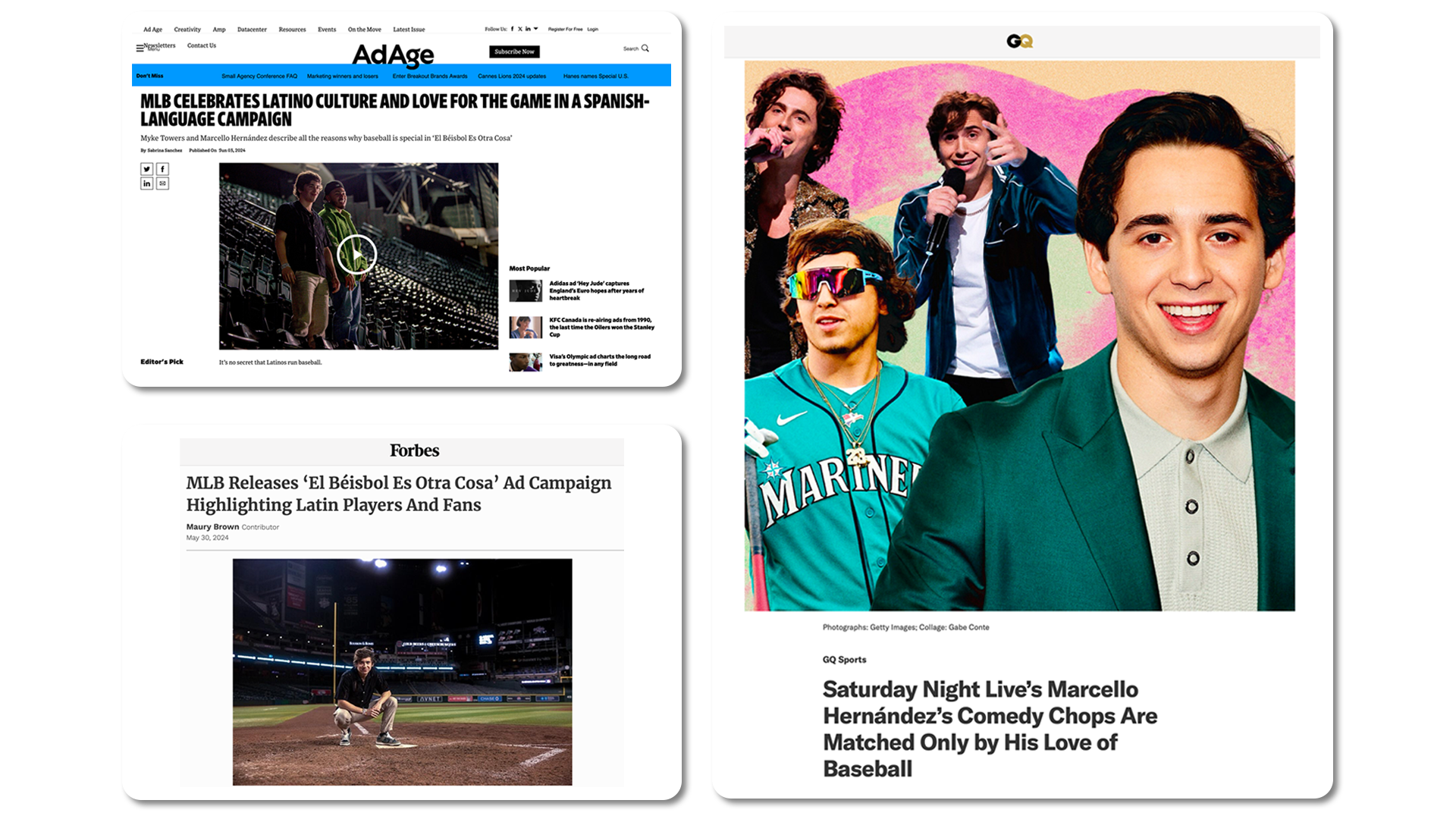 Produced in partnership with Remezcla this Spanish language brand campaign celebrates the vibrant influence of Latine culture in baseball. The campaign included commercial spots featuring Marcello Hernandez and Myke Towers, two player driven social spots with artist collabs, and ten social influencer pieces from Hispanic and Latino celebrities. The campaign garnered earned media attention from AdAge, Forbes, GQ, and more.